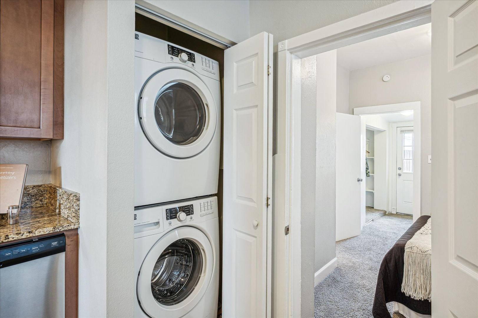 This charming duplex features a large living area and dinning room as well as an updated kitchen with new stainless steel appliances. The home also includes a washer/dryer, huge closet, large fenced in yard and a detached, private 1 car garage with ample room for a vehicle and storage.